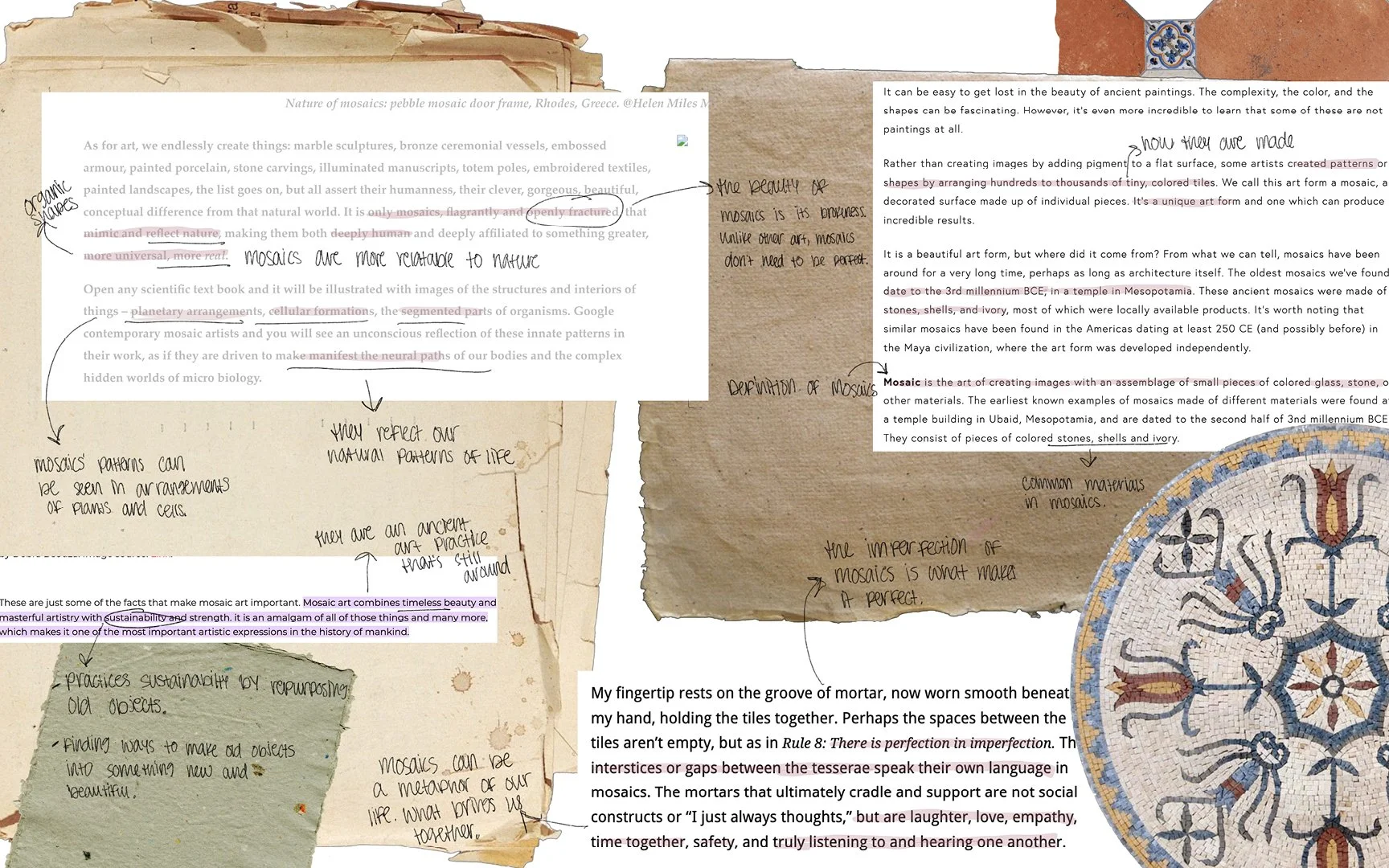I began researching how mosaics are made as well as the history of mosaics to understand more about the art itself.