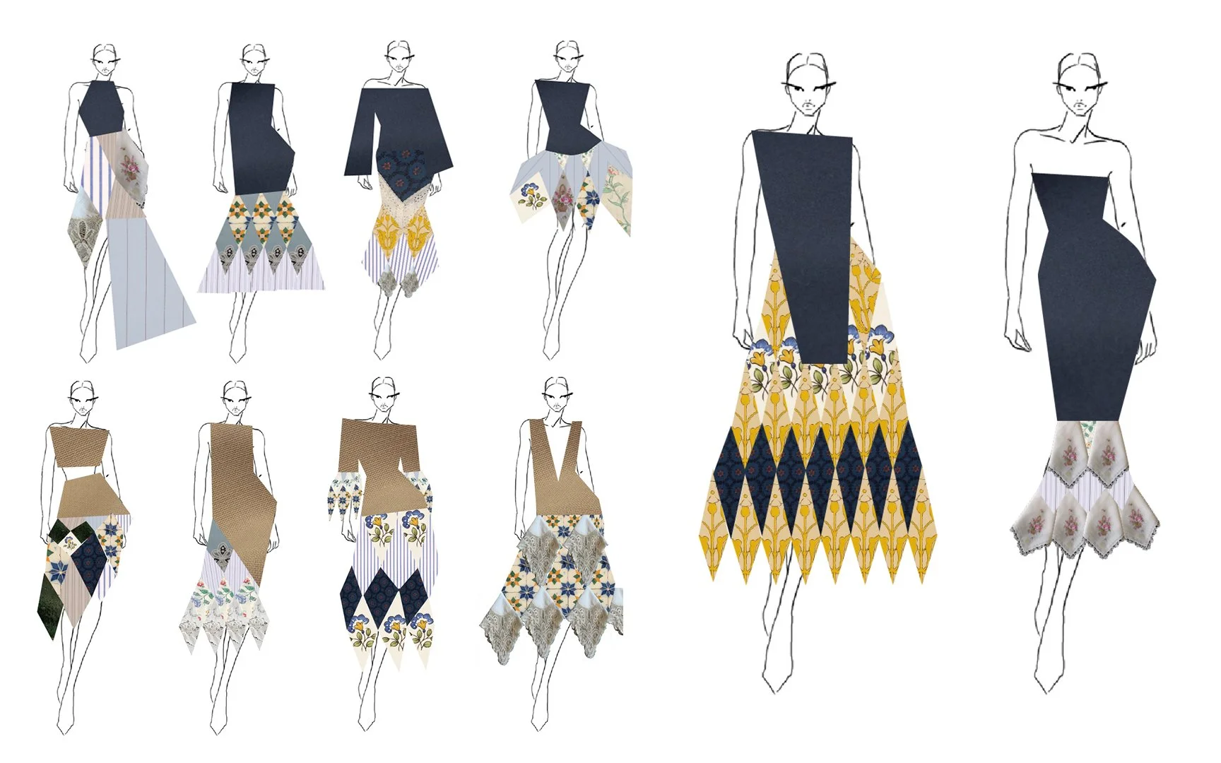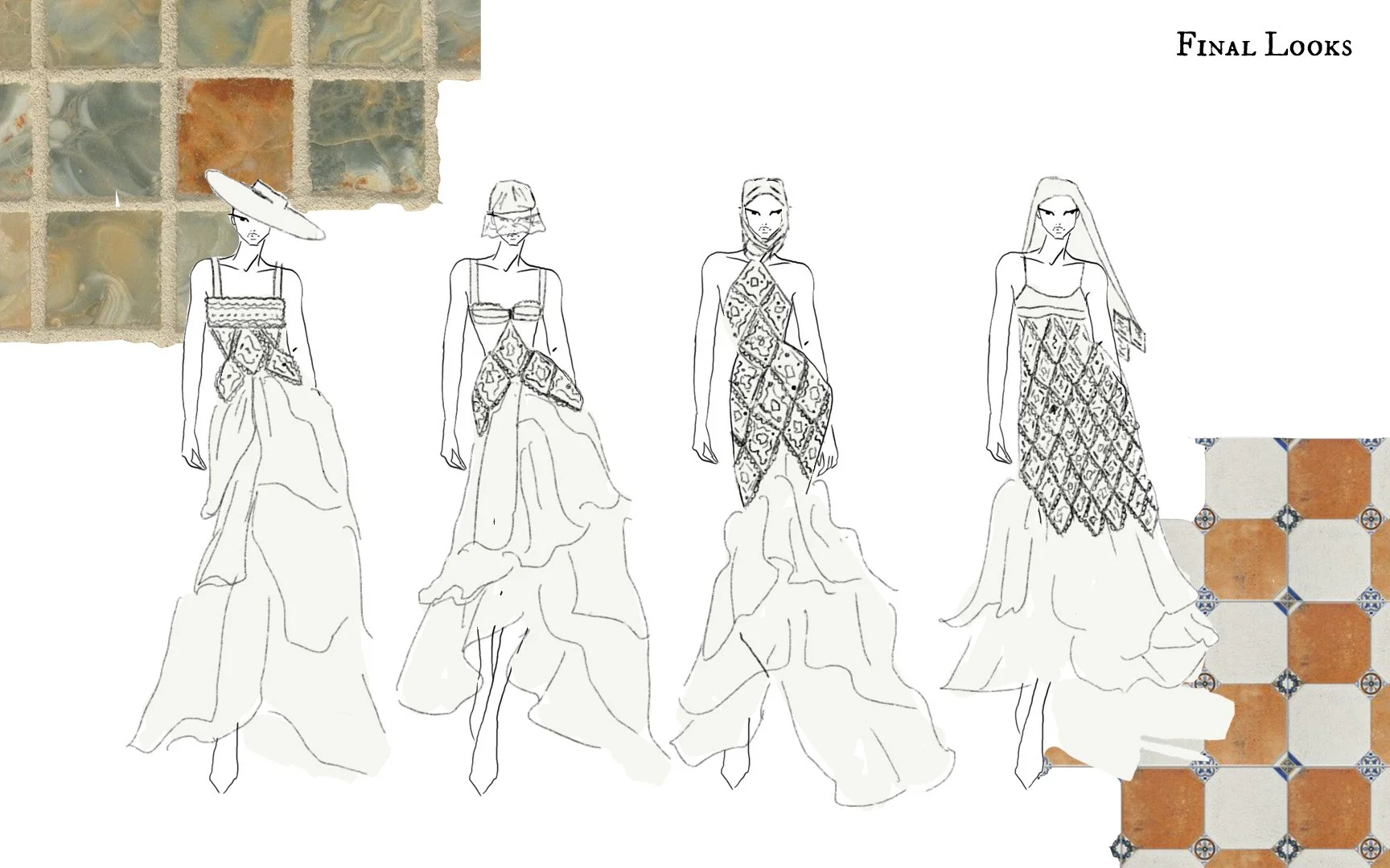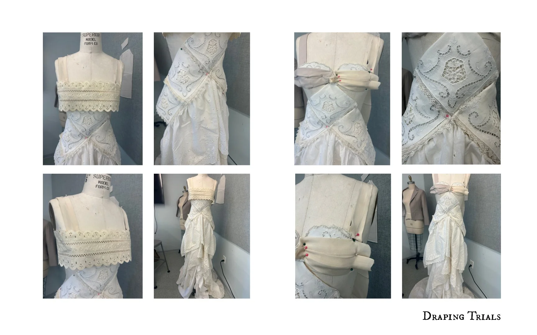 This project was in collaboration with St. Vincent DuPaul. The prompt was to make a garment based on the theme “Better Together”. I was inspired by the art of mosaics and how each unique piece is placed together to become one beautiful artwork. As instructed, our garments had to be made from second-hand items at the thrift store. Vintage lace handkerchiefs inspired me to create this dress.